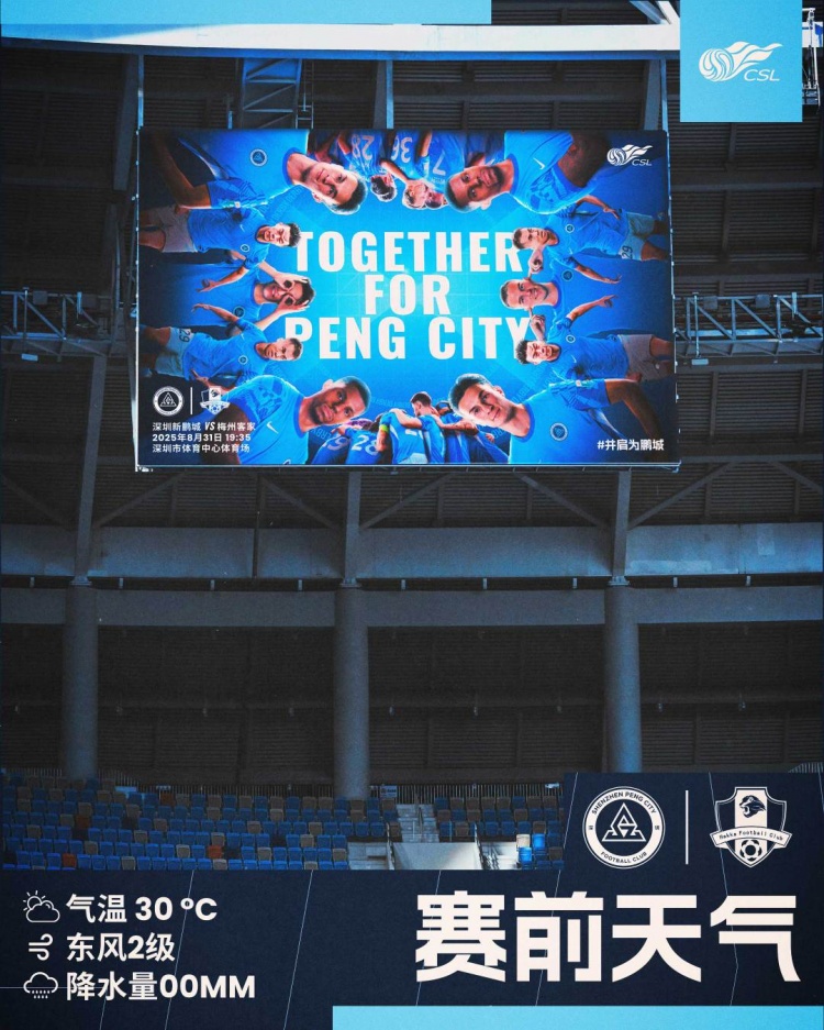 本日深圳主场气温30℃,东风2级,降水量0mm,体感较为酷热。