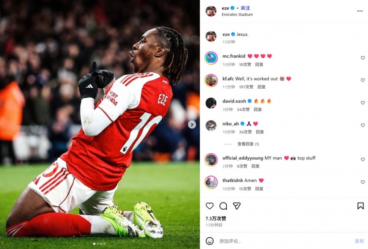 他也在赛后被英超官方评比为本场比赛的全场最好球员。埃泽也在赛后通过社媒晒出我方的滑跪庆祝照,并不禁惊奇:“天哪!”