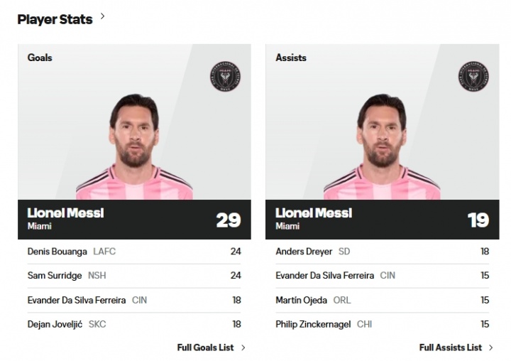 2025旧例赛,梅西28场获利29球19助,现在双双霸榜好意思职联旧例赛的弓手榜和助攻榜。