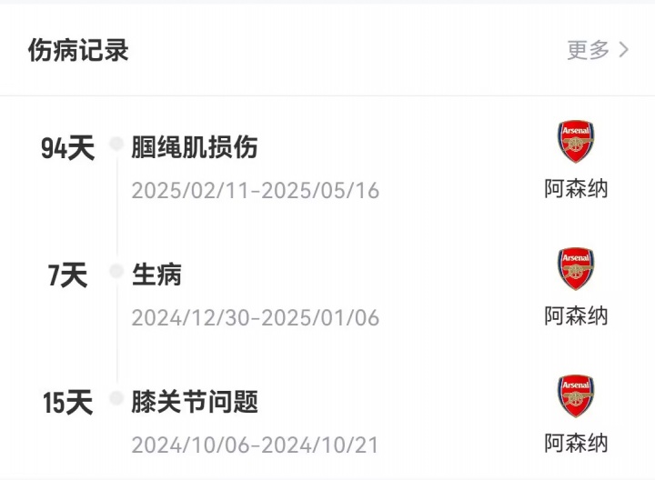 这是哈弗茨在2025年遭受的第二次伤病,他本年2月在迪拜的一次巡视营中遭受腿筋扯破,这让他缺席了英超和欧冠的18场比赛