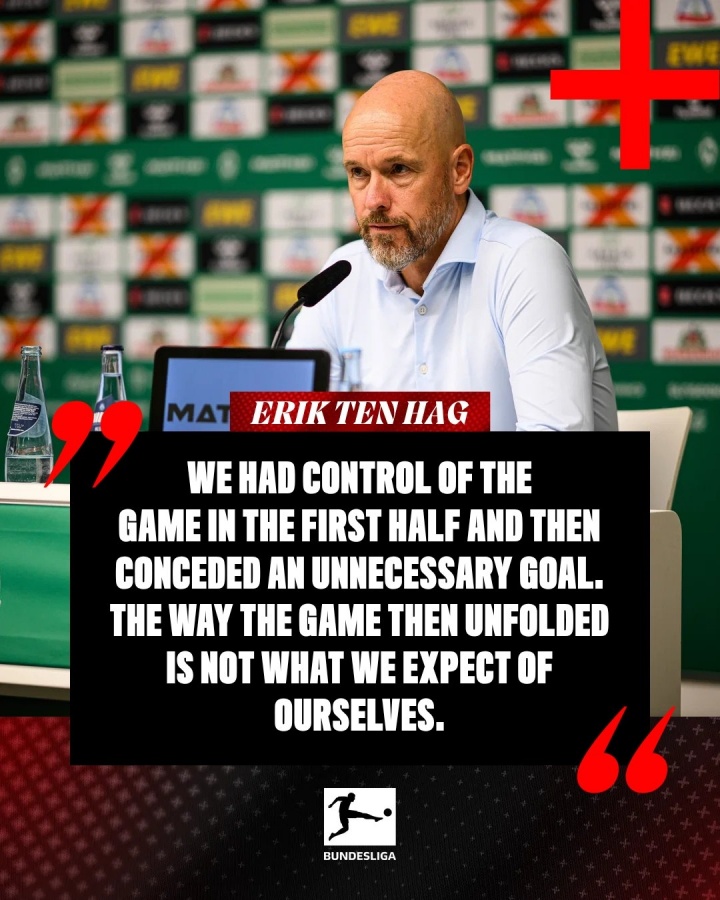 08月31日讯 德甲第二轮,勒沃库森3-3遭不莱梅绝平,勒沃库森主老师滕哈赫出席发布会。