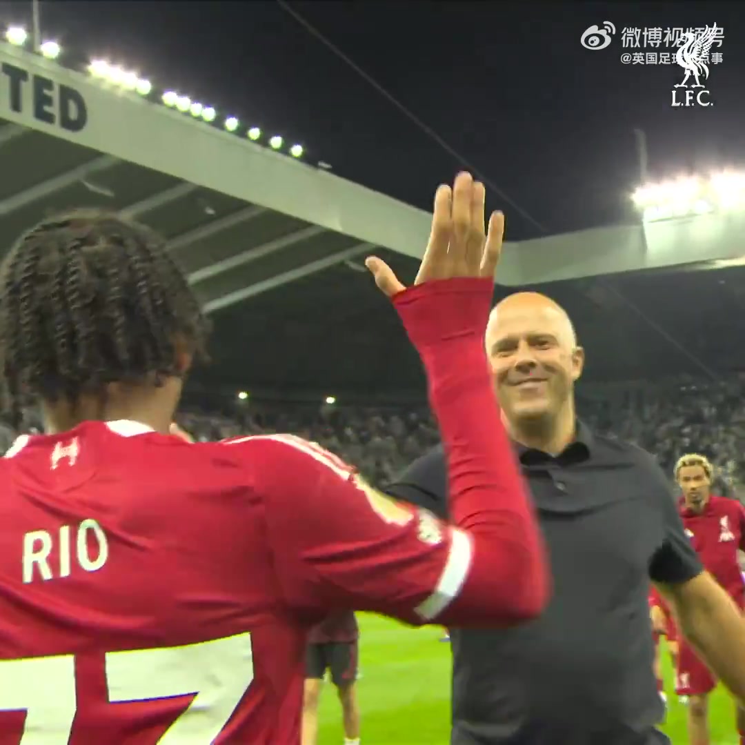赛后,斯洛特把打进绝杀球的恩古莫哈“推”向利物浦球迷,让他尽情享受球迷的应许❤️
