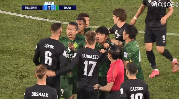 第17分钟,池忠国飞铲放倒敌手,两边随后爆发冲破,冲破事后裁判未出牌。