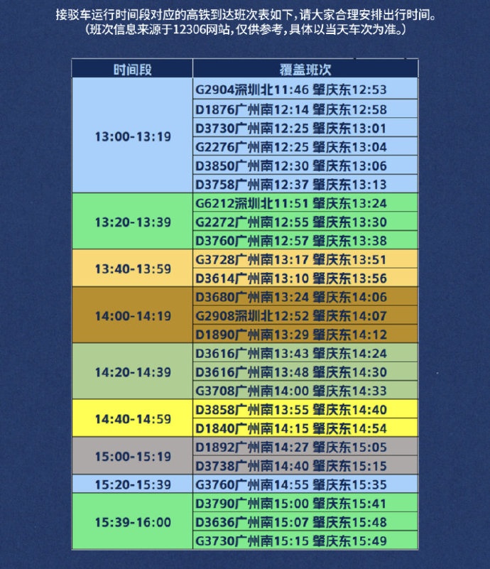 接驳车开动时辰段对应的高铁到达班次表(见图2)