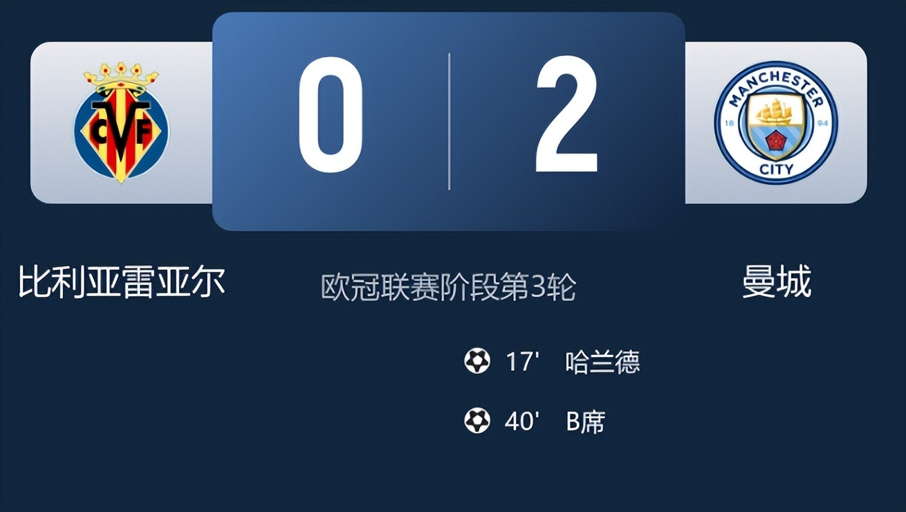 比利亚雷亚尔镇守主场陶瓷球场迎战曼城。上半场,哈兰德邻接12场破门,随后B席立功。上半场曼城2-0普及,下半场主队头球中柱。错失追平契机,最终曼城2-0黄潜。积分榜上,曼城三轮7分暂第五,比利亚雷亚尔3轮仅1分第29。