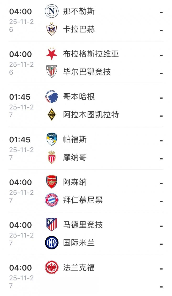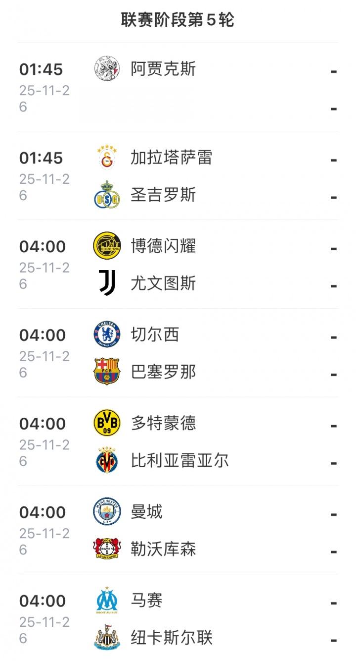 直播吧11月6日讯欧冠第4轮比赛一王人截至,36支球队在2天内打收场18场比赛。第5轮比赛将在北京时代11月26日-27日凌晨进行。