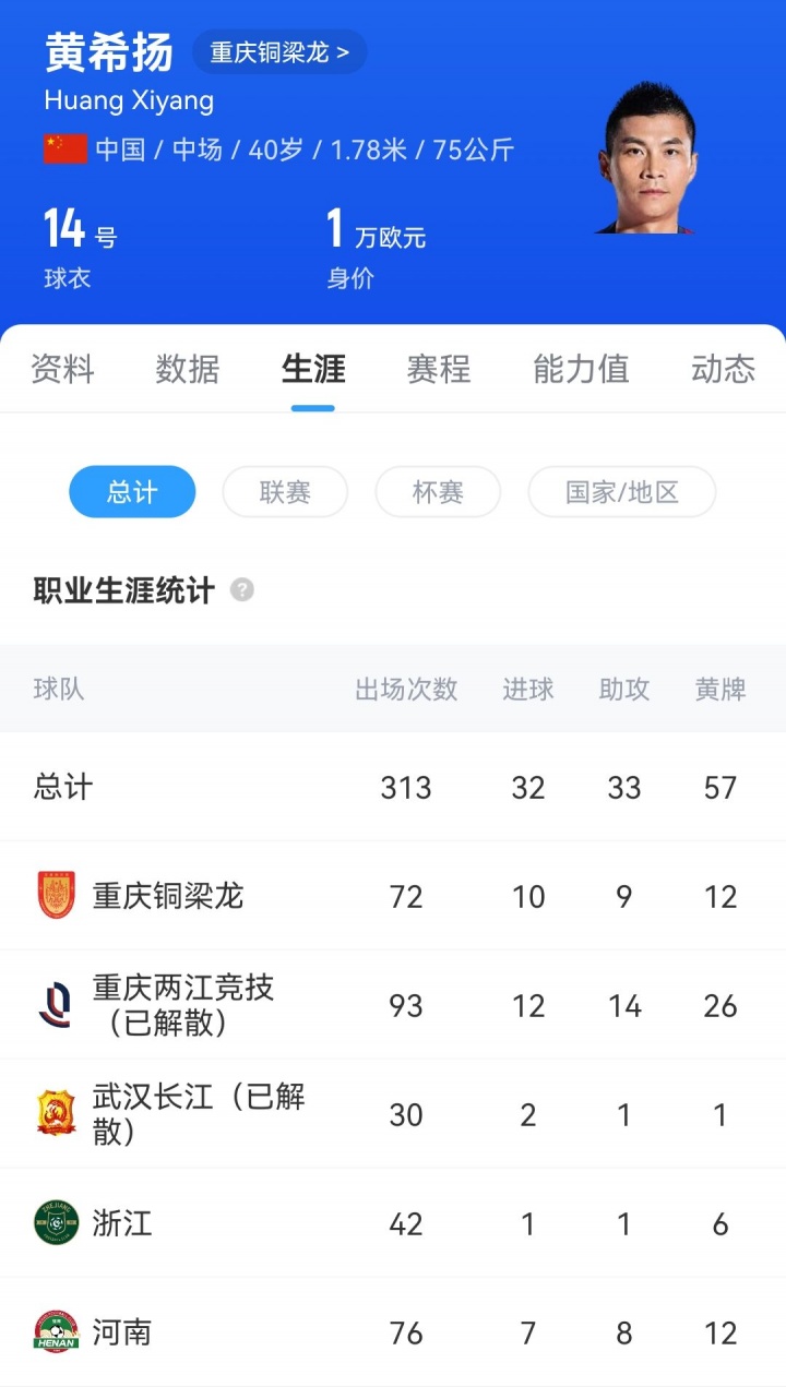 黄希扬是别称地爽脆说念的重庆籍球员,奇迹活命也肇端于重庆队,之后他曾经障碍河南、杭州绿城、武汉长江,在2020年他又加盟重庆力帆。