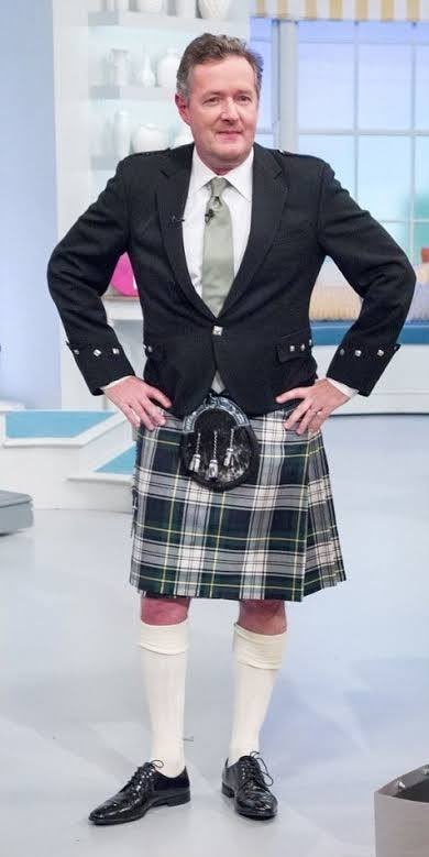 英国名嘴皮尔斯·摩根社媒晒我方身穿苏格兰方格裙的相片,配文:“从未嗅觉我方如斯苏格兰。”
