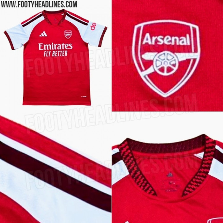 阿森纳新比联赛季本场对决足球赛事杯服谍照: 两种红色增加层次 领口袖口体现细节