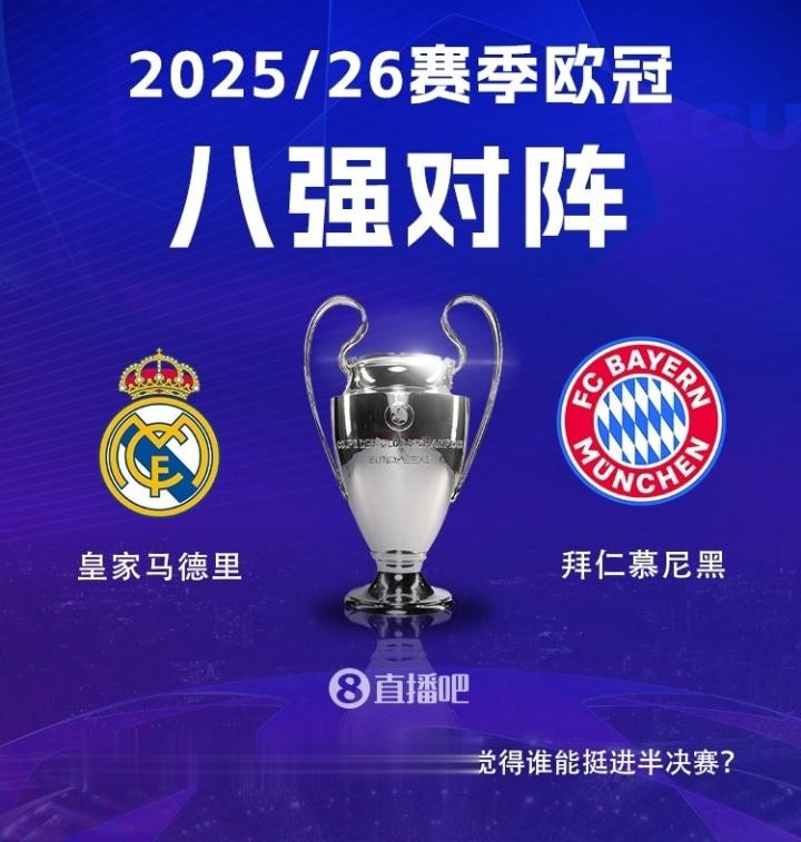 直播吧04月07日讯欧冠1/4总决赛 首局 明晨3:00打响,“欧洲德比”皇马与拜仁将上演第29次对决;葡体vs阿森纳,约克雷斯面对老东家将有怎样的表现?