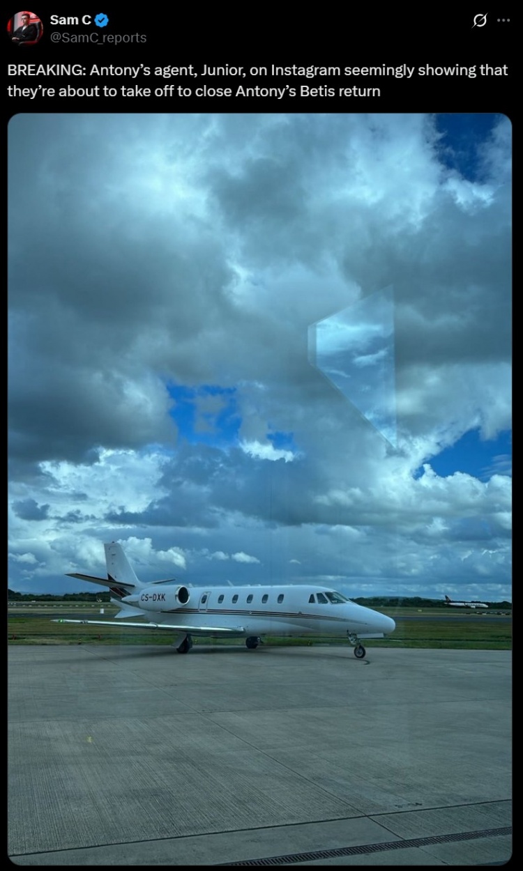 9月2日讯 足球记者Sam C报谈,安东尼的牙东谈主Júnior Pedroso更新个东谈主ins动态,似乎清爽他与安东尼行将启程,以完成球员再次加盟贝蒂斯的转会事宜。