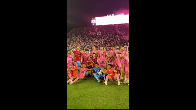 现年37岁的布斯克茨2023年加盟迈阿密外洋,这位西班牙中场各项赛事也曾为球队出战100场比赛,在淘汰奥兰多城的赛后,布斯克茨获赠一件记挂球衣,全队合影贪恋庆祝这一时间。