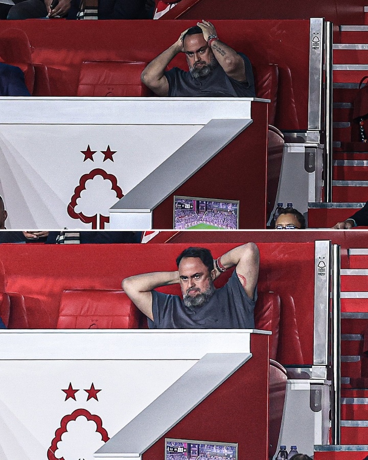 看台上,诺丁汉丛林雇主、希腊船王马里纳基斯额外沉闷,逝世谛视+抱头瞋目,看着场上的比赛。