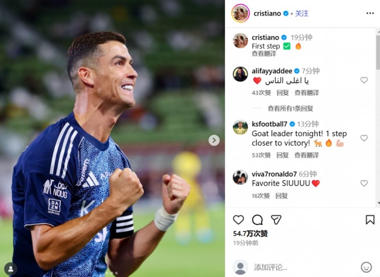 在酬酢媒体上,C罗晒出了我方的庆祝照并配文谈:走出第一步!